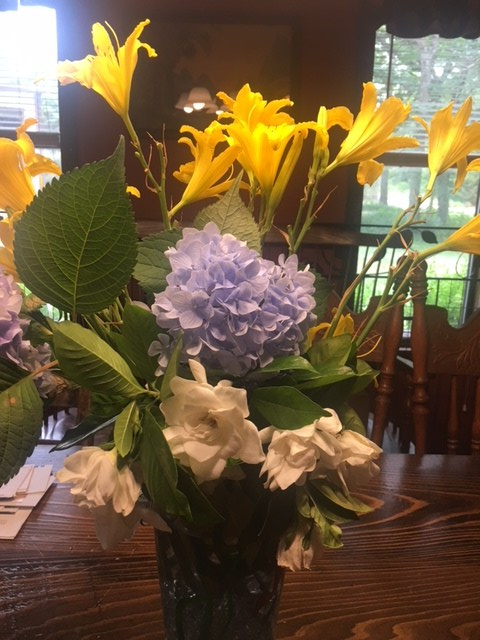 bloomingsucccess June 4, 2018 | A picture of yellow lilies, hydrangeas and gardenia’s on the dining table.